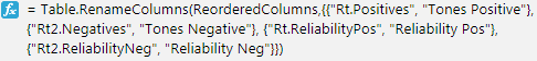 8. Click Done, click the Reorder Columns button and move the Rt2.Negatives button to the right of Rt.Postives: